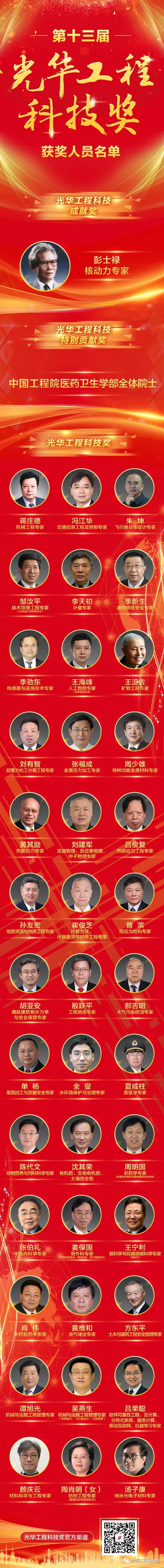 11月8日,第十三屆光華工程科技獎揭曉儀式在北京隆重舉行。中國兵器工業集團有限公司科技委副主任委員、戰術導彈工程專家鄒汝平獲第十三屆光華工程科技獎(獲獎人員全名單及鄒汝平事跡附后)。 光華工程科技獎由中國工程院主管,每兩年頒發一次,目前已是第十三屆,被譽為“中國工程界最高獎項”,極大地激勵了我國工程師、科學家從事工程科技研究、發展、應用的積極性和創造性。根據光華工程科技獎候選人提名要求,候選人需在重大工程設計、研制、建造、生產、運行、管理等方面解決關鍵科學技術問題或在工程科學技術及工程管理領域有重要發現、發明,并有顯著應用成效,或者是應用本人研究成果、發明創造,發展高新技術及相關產業,成效特別顯著者才可提名。今年,全國范圍內共產生了296名有效候選人。 此次揭曉儀式正式公布了從296名候選人中評選出的第十三屆光華工程科技成就獎、光華工程科技特別貢獻獎以及光華工程科技獎的獲得者,最終僅有40位專家和1個團體獲獎。本屆光華工程科技獎的獲獎科學家們,緊密圍繞國家重大戰略需求,瞄準經濟建設和事關國家安全的重大工程科技問題,緊貼新時代社會民生現實需求和軍民融合需求,加快自主創新成果轉化應用,為創新驅動發展,建設科技強國,以及實現“兩個一百年”奮斗目標和中國夢做出了重要貢獻。 獲獎人員全名單