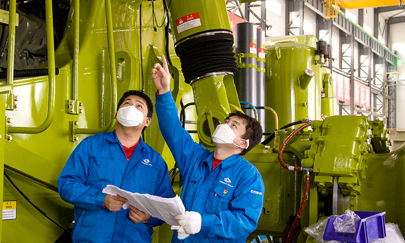 圖為北重集團北方股份一線員工趕制生產進度。