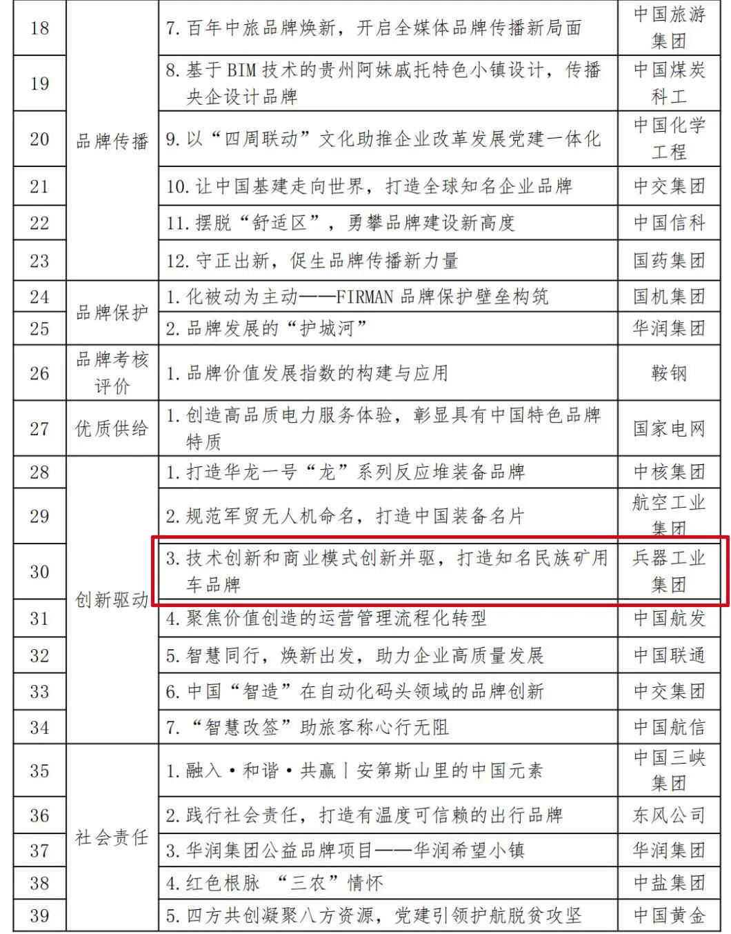 5月10日,由國家發展改革委等7部門和上海市政府共同主辦,國務院國資委特別支持的2021年中國品牌日活動在上海舉辦。 活動現場,國資委指導舉辦了中國企業品牌建設分論壇,會上發布了《2020年度中央企業品牌建設發展報告》、2020年度100個國有企業品牌建設典型案例和100個優秀品牌故事。中國兵器工業集團北重集團的“技術創新和商業模式創新并驅,打造知名民族礦用車品牌”入選2020年度100個國有企業品牌建設典型案例,中國兵器工業集團北方公司的微電影《大山里升起的希望》入選2020年度100個優秀品牌故事。 《2020年度中央企業品牌建設發展報告》分析了當前中央企業加強品牌建設的形勢要求,從戰略引領、專業運營、支撐保障、組織管控、全球推廣5個方面總結了中央企業年度品牌建設進展。 2020年度100個國有企業品牌建設典型案例和100個優秀品牌故事,匯集企業優秀經驗做法,豐富國企品牌資源池,促進企業相互學習借鑒,加快提高品牌管理專業化水平。 2020年度100個國有企業 品牌建設典型案例 來源/國資小新 |