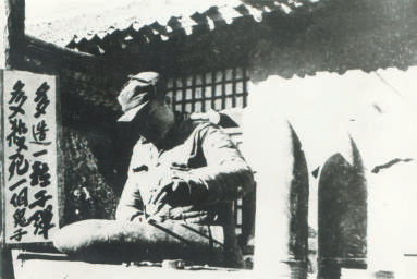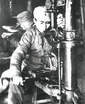 ▲抗日戰爭時期,晉察冀軍區技術人員在拆卸炮彈。旁邊的標語為:多造一粒子彈,多殺死一個鬼子