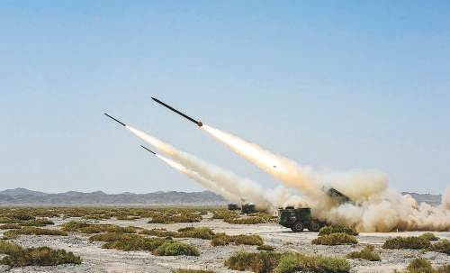 ▲某集團軍炮兵旅遠火營使用遠程多管火箭炮進行實戰化訓練