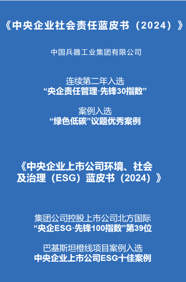 國(guó)有企業(yè)社會(huì)責(zé)任平行論壇現(xiàn)場(chǎng)發(fā)布了《中央企業(yè)社會(huì)責(zé)任藍(lán)皮書(2024)》《中央企業(yè)海外環(huán)境、社會(huì)及治理(ESG)藍(lán)皮書(2024)》《中央企業(yè)上市公司環(huán)境、社會(huì)及治理(ESG)藍(lán)皮書(2024)》等系列成果。其中,集團(tuán)公司連續(xù)第二年入選“央企責(zé)任管理·先鋒30指數(shù)”榜單,集團(tuán)公司案例入選“綠色低碳”議題優(yōu)秀案例,所屬控股上市公司北方國(guó)際入選“央企ESG·先鋒100指數(shù)”第39位,巴基斯坦橙線項(xiàng)目案例入選中央企業(yè)上市公司ESG十佳案例