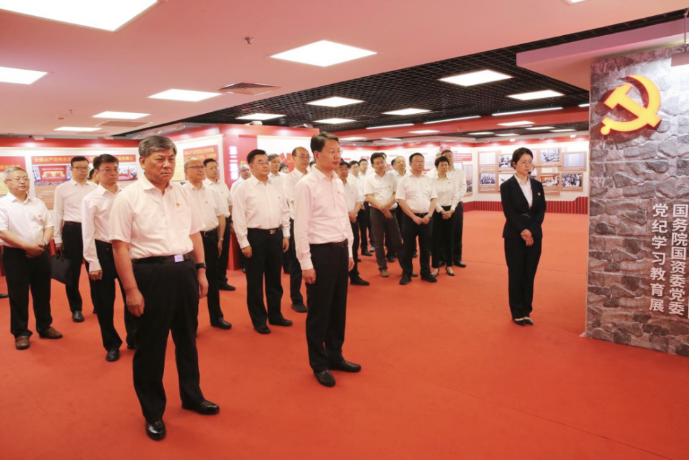 黨組同志認(rèn)真聆聽講解,集體參觀了“政治鑄魂——習(xí)近平總書記重要論述”“紀(jì)法樹威——黨規(guī)黨紀(jì)相關(guān)要求”“傳承增信——黨的優(yōu)良傳統(tǒng)”“嚴(yán)管促行——國務(wù)院國資委黨委紀(jì)律建設(shè)成效”“警示立戒——反面典型案例”“實(shí)干建功——工作展望”6個(gè)篇章,通過觀看圖文、視頻等形式多樣的展品展示,進(jìn)一步學(xué)習(xí)領(lǐng)會習(xí)近平總書記關(guān)于國資央企的重要指示批示精神和黨的紀(jì)律建設(shè)的重要論述,學(xué)習(xí)把握《中國共產(chǎn)黨紀(jì)律處分條例》新增、修訂內(nèi)容,全面了解國務(wù)院國資委黨委強(qiáng)化政治引領(lǐng)、加強(qiáng)政治監(jiān)督、深化紀(jì)律建設(shè)、抓實(shí)巡視工作等方面的做法舉措,集中觀看近年來國資央企發(fā)生的具有代表性的違規(guī)違紀(jì)案例,深刻領(lǐng)悟以習(xí)近平同志為核心的黨中央堅(jiān)持黨要管黨、全面從嚴(yán)治黨取得的歷史性成就,全面感受國務(wù)院國資委黨委全面從嚴(yán)治黨取得的重要成果。