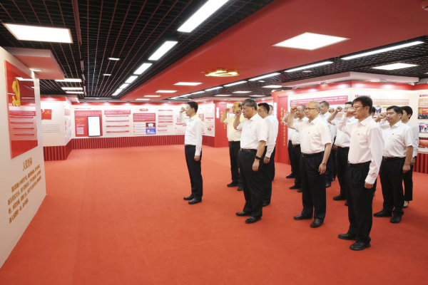 參觀后,程福波帶領(lǐng)大家面向黨旗重溫入黨誓詞。(兵宣)