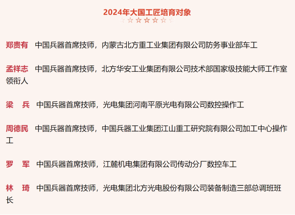 兵器工業(yè)集團6名高技能人才入選2024年大國工匠培育對象名單