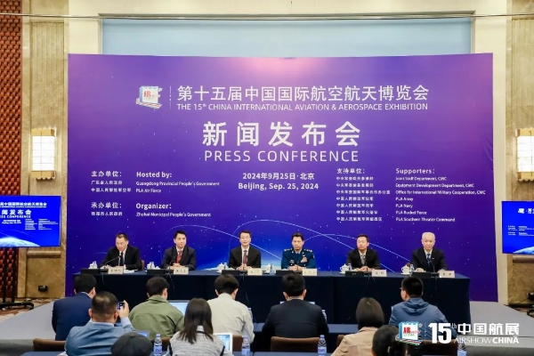 9月25日,第十五屆中國國際航空航天博覽會(以下簡稱“中國航展”)新聞發(fā)布會在北京舉行。廣東省委常委、常務(wù)副省長張虎介紹本屆航展有關(guān)情況,中國空軍副司令員俞慶江介紹空軍參展亮點。中國航展珠海執(zhí)委會主任、珠海市委副書記、市長黃志豪,國家國防科技工業(yè)局(國家航天局)新聞宣傳辦公室副主任李陽,中國民航局運行監(jiān)控中心副主任戴軍分別答記者問。廣東省政府新聞辦副主任鄧鴻主持發(fā)布會。